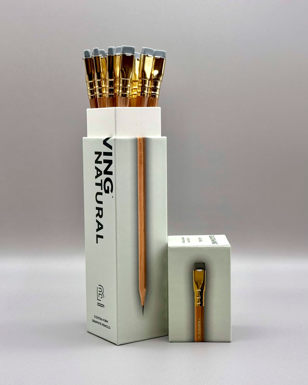The Blackwing Natural features an exposed Incense-cedar barrel with a subtle clear matte finish and the popular extra-firm graphite. Every Blackwing Natural features a gold imprint, and the iconic square Blackwing ferrule with grey eraser.
