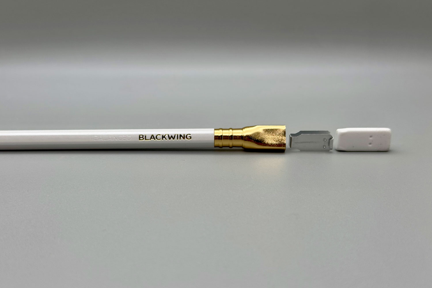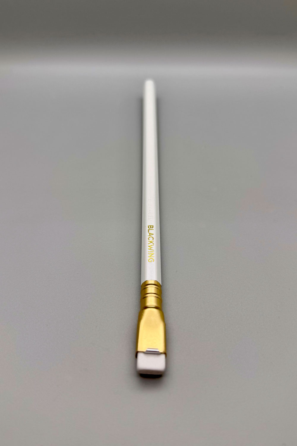The Blackwing Pearl features a pearl white finish, gold imprint, and a balanced and smooth graphite core. Every Blackwing Pearl pencil features the iconic square Blackwing ferrule with a white eraser. Note that Blackwing pencils are longer than most pencils, at around 20cm.